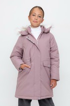 Пальто стеганое Сицилия зимнее для девочек из переливающейся ткани на молнии и планке с кнопками. Рукава реглан, на талии эластичный пояс с фастексом, по бокам карманы с листочкой, на спинке настрочная центральная деталь, по переду отлетная кокетка. Высокий теплый воротник, съемный капюшон на кнопках, съемная опушка. Пальто декорировано термотрансферами, нашивками и поясной сумкой.