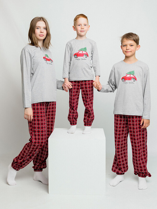 Пижама детская batik новогодняя из супрема: футболка с длинным рукавом и брюки. Футболка серая с новогодним принтом, брюки в красную клетку на резинке.Характеристики:Материал: Супрем пенье 100% хлопокПроизводитель: batik