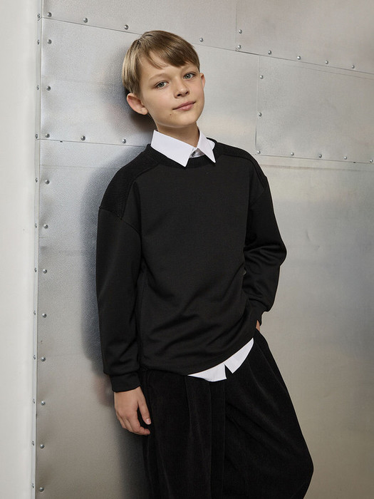 Черный трикотажный пуловер с вельветовыми вставками