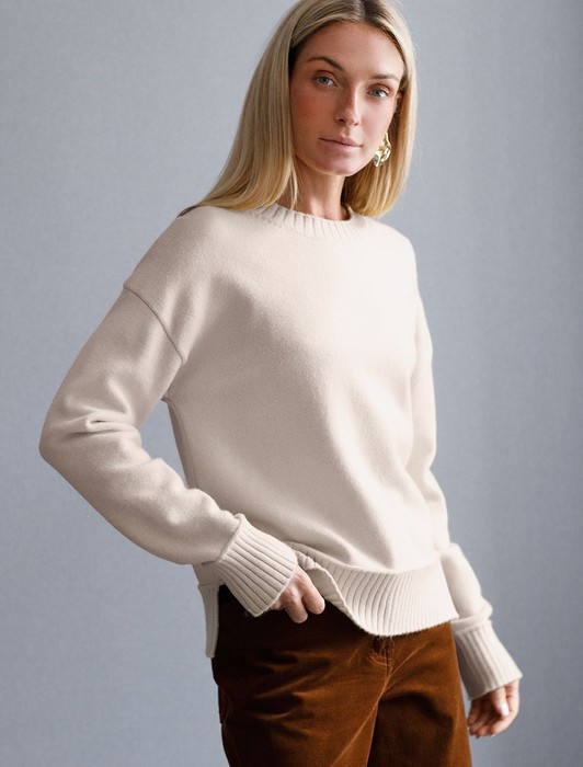 Состав: 52%ПАН (акрил) 33%ПЭ 8%ПУ 7%Кашемир Плотность: 7 GG Размер товара на первом фото: 42Укороченный джемпер овсяного цвета с эффектом меланж с круглым вырезом связан из высококачественной пряжи с кашемиром — идеальное сочетание мягкости и практичности. Пряжа с кашемиром придаёт ему бархатистую нежность и тонкую структуру, каждое прикосновение с которой, напоминает о тепле и уюте в прохладные дни. Благодаря нежной текстуре материала этот вариант отлично подходит даже для чувствительной кожи, не вызывая раздражения и дискомфорта в течение дня. Сдержанный, элегантный силуэт джемпера подчёркивает вкуc обладательницы, а филигранная отделка ворота — внимание к деталям. Универсальный оттенок и изящная мягкость делают его идеальным выбором в любой ситуации Широкие манжеты и нижний край добавляют аккуратности, а продуманная посадка и небольшие разрезы по бокам делают повседневный джемпер удобным для многослойных образов — от офисного комплекта до расслабленного уикенда. Свободный крой джемпера идеально подходит для женщин, которые ценят удобство и стиль одновременно, а так же идеальноподходит на большие размеры. Благодаря качественной пряже свитер сохраняет форму и внешний вид даже после многократных носок.