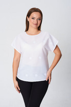 Необычная удлиненная блузка строго силуэта. Рельефные швы от горловины, неровная линия низа, широкие подгибки и планка, выделяют эту блузку из всех других
