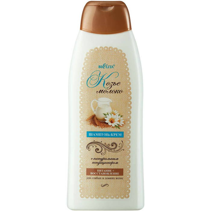 Питание + Восстановление для слабых и ломких волос Козье молоко — одно из наиболее эффективных и полезных средств красоты. Оно богато макро- и микроэлементами, протеинами, аминокислотами, липидами, витаминами, которые наполняют волосы силой и энергией, обеспечивают их естественной красотой. Козье молоко благодаря своему ценнейшему составу и уникальным свойствам заботится о волосах, питает их, восстанавливает и укрепляет. Мягкий кремообразный шампунь бережно очищает волосы, укрепляет их и восстанавливает гидробаланс.