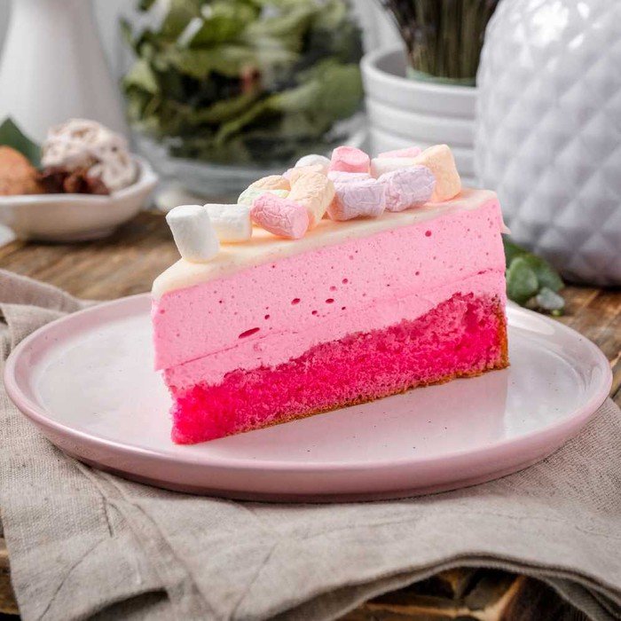 сахар, смесь растительно-сливочная (масло сливочное, масла раст. (подсолнечное, пальмовое, оливковое)), сливки для взбивания (вода, жир растительный, сахар, молочный белок, эмульгатор лецитин), мука пшеничная, молоко сгущенное с сахаром, сироп «Бабл гам» (сахар, ароматизатор натур., краситель пищевой), белый шоколад, белок пастериз., агар-агар, краситель пищевой, регулятор кислотности (лимонная кислота).