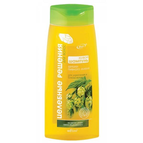 ШАМПУНЬ для укрепления и блеска волос Шишки пивного хмеля основан на богатейшем по составу настое шишек хмеля, который обладает укрепляющим действием, восстанавливает естественный баланс кожи головы и придает волосам ослепительный блеск. Регулярное применение шампуня и бальзама придает волосам силу и блеск, ускоряет их рост.