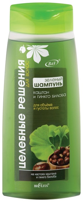 Зелёный шампунь для объема и густоты волос Каштан и гинкго билоба великолепно ухаживает за тонкими и слабыми волосами.