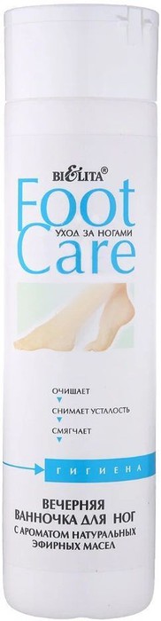 Вечерняя ванночка для ног создана на основе мягких моющих средств, предназначена для ежедневного ухода за ногами. Быстро снимает усталость и тонизирует.