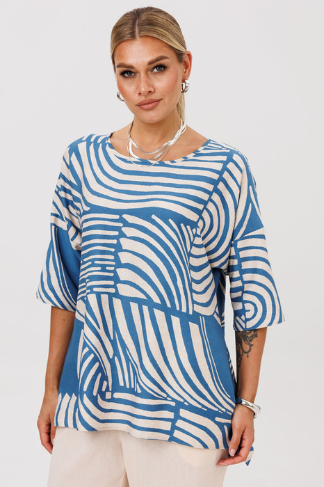 Бренд белорусской женской одежды больших размеров Anastasia представляет блузку оверсай, которая станет отличным дополнением к вашему гардеробу. Подойдет как для повседневной носки (работа, офис, прогулки), так и для праздничных выходов. Достаточно дополнить ее соответствующими аксессуарами. Она легко будут сочетаться с вещами из Вашего гардероба. Блузка со спущенным плечом, трапециевидного силуэта с разрезами по бокам.