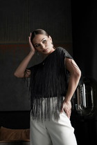 Блузка с рукавами покроя "реглан", горловина блузка с эластичной резинкой, что позволяет носить блузку на плечах и с открытыми плечами. Рукава реглан, свободные 3/4, по низу с эластичной резинкой.блузка со съёмным поясом.