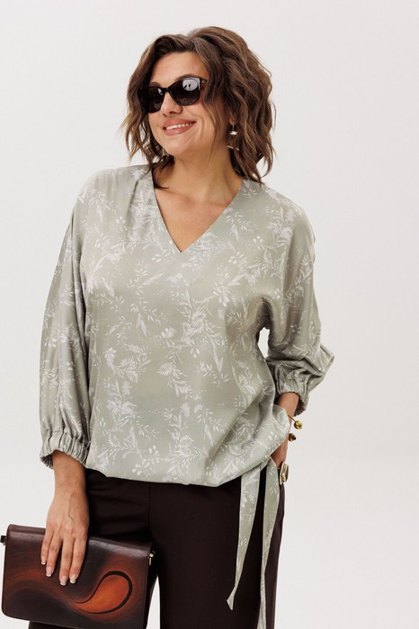 Особую динамику и индивидуальность блузе придают детали: цельнокроеные рукава три четверти подчёркивают целостность и плавность линий, а притачной пояс и манжеты, собранные в нежную сборку благодаря эластичной резинке, создают выразительный контраст с текучестью основной ткани. Эта умная конструкция позволяет вам самостоятельно регулировать длину блузы, творчески преобразуя её силуэт — от парящего и расслабленного до более собранного и чёткого.