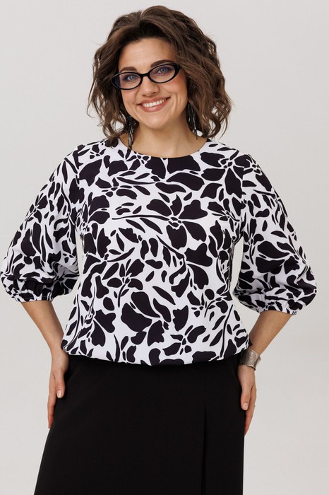 Блуза ANELLI 1779 черно-белые цветы