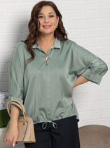 Блуза свободного кроя. Передняя часть на притачной планке, имеющей застёжку на петли-пуговицы. V-образный вырез формирует красивое декольте.