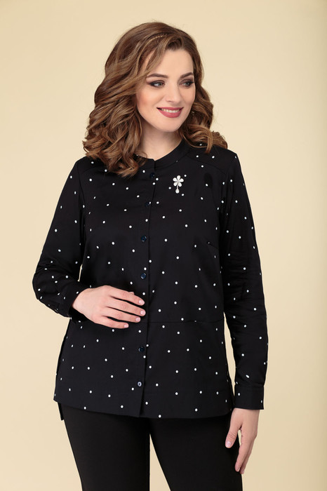 Совместные покупки Пермь Женская одежда Блузки, рубашки — Блуза ДаЛи 5373Б темно-синий+горох