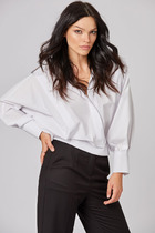 Нарядная блуза укороченной длины в женственном стиле с эффектом запАха