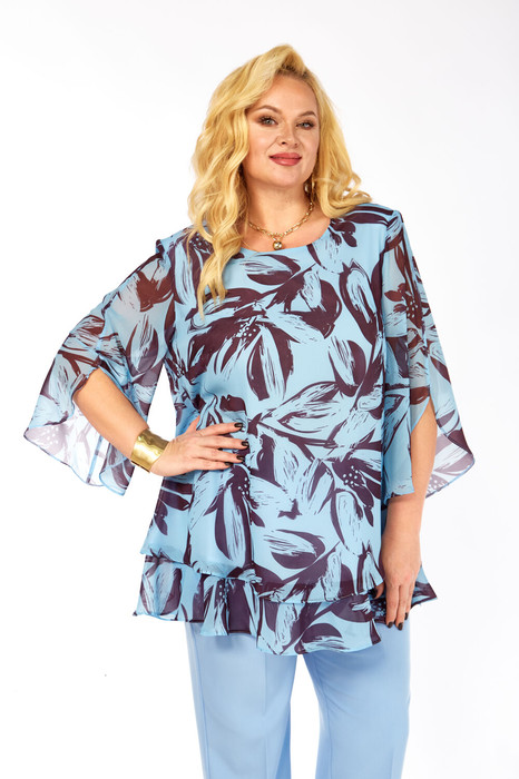 Совместные покупки Пермь Женская одежда Блузки, рубашки — Блуза Элль стиль 2213/12а голубой/кофе