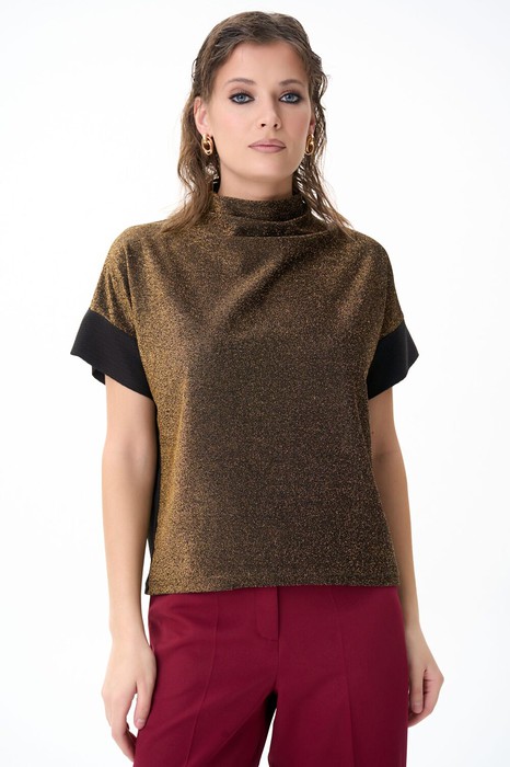 Туника «Лючия» — универсальная модель, выполненная из мягкого эластичного полотна с эффектным мерцающим покрытием. Лёгкий блеск ткани делает образ выразительным, но при этом остаётся в рамках сдержанной элегантности. Свободный силуэт комфортно садится по фигуре, не стесняя движений и визуально корректируя линию плеч. Укороченный рукав дарит аккуратный и женственный акцент, а мягкая драпировка в области горловины создаёт более утончённый вид. Туника сочетается с брюками, юбками и базовыми вещами, подойдёт и для повседневных образов, и для вечерних выходов. Лёгкая, универсальная и всегда уместная — модель, которая смотрится стильно без усилий.
