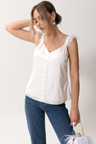 27.03 Vilatte Блузка с широкими рукавами 3/4 из плотного лиоцелла D29.354 кокос
