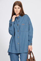 Блузка женская, повседневная. Выполнена из хлопчатобумажной ткани, свободного силуэта. Горловина фигурной формы. По переду нагрудный карман. Спинка цельная. Рукава спущенные, со складками по верхнему и нижнему срезу, на манжете с застежкой на одну петлю и пуговицу. Низ изделия фигурный, с перепадом длины.