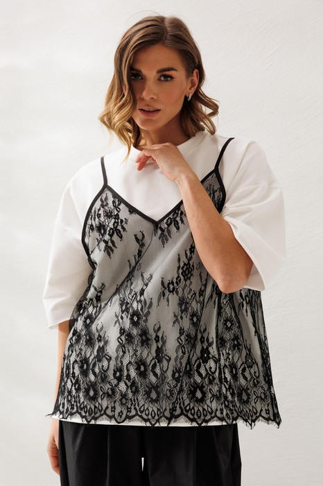 Стильный блузон-тандем в стиле оверсайз, состоящий: футболки + ажурной майки.