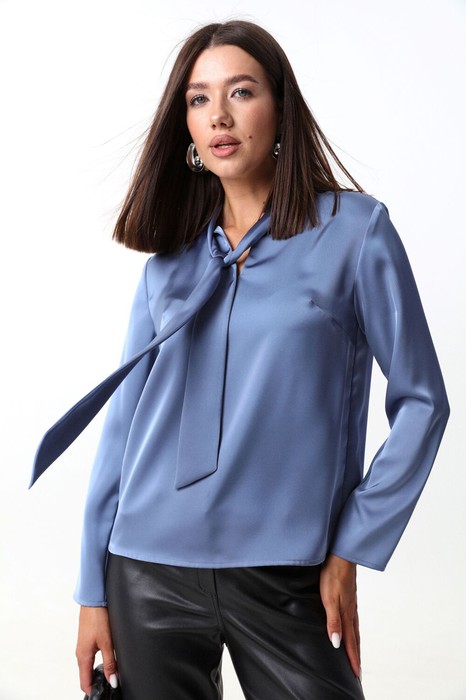 Элегантная блуза из плотной струящейся ткани с атласным эффектом объёмного кроя, с декоративными завязками на горловине. По переду блузы прошиты нагрудные вытачки. Манжеты с застёжкой на пуговицу. Рост фотомодели 175 см. Размер у фотомодели – 44.