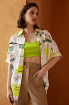 Блуза прямого силуэта из шифоновой ткани с вышивкой. Горловина округлая, на спинке застежка на петлю и пуговицу. По переду кокетка, от кокетки сборка. Рукав втачной удлиненный, по низу волан собранный на резинку.