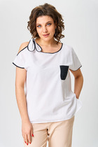 Роскошная блузка полуприлегающего силуэта из текстильной ткани голубого цвета. Фигурный вырез и перед изделия дополнены широкой оборкой с декоративным элементом в форме цветка. Втачные рукава дополнены оборкой. Длина изделия по спинке от плечевого шва до низа изделия - см. Рост фотомодели - 170 см