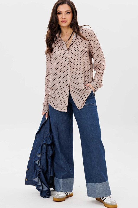Совместные покупки Пермь Женская одежда Блузки, рубашки — Блуза MisLana 1149-Р бежевая/горошки