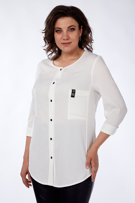 Блуза из вискозно-трикотажного полотна незаменима в этом сезоне как никогда. Перед блузы с бочком по косой и нагрудной вытачкой, выходящей из него, карман накладной, горловина круглая. По центру переда - функциональная застежка на 6 пуговиц и 6 пробивных петель. Спинка без среднего шва, рукав 3\4, двухшовный с манжетой по косой. Низ блузы спереди и сзади закруглённый. Эта блуза поистине универсальна и подходит как для повседневной носки, офиса, так и для различных мероприятий. Красота в простоте - так можно описать эту блузу!