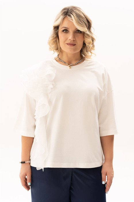 Эта нарядная блузка с пришивным цветком идеально подойдет для создания ярких и стильных образов в теплое время года. Она выделяется своим уникальным и запоминающимся дизайном, который не оставит равнодушной ни одну модницу. Изготовлена из легкой и приятной к телу ткани, блузка обеспечивает комфорт и удобство во время ношения. Почему она покорит твоё сердце: мягкий дышащий хлопок , универсальный крой , элегантные детали, легко сочетается: с джинсами, юбкой или шортами — образ готов за 5 минут! Женская блузка - универсальный предмет гардероба, который подойдет для любого случая— от повседневных до вечерних . Молочная расцветка подойдет под любой стиль и цветовую гамму, а оверсайз крой добавит небрежности и удобства в носке.
