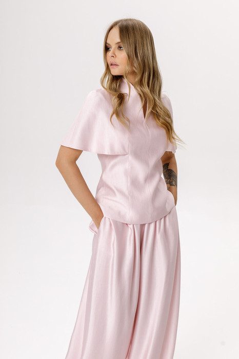 Блуза приталенного силуэта и цельнокроеной пелериной (приобрести брюки с фото можно по арт. 6671).