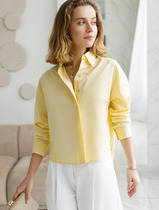 Блузка женская из хлопковой ткани, прямого силуэта с втачным рукавом. Линия плеча слегка спущена. Застежка центральная на петли и пуговицы. Воротник отложной с лацканами. Перед с вытачками по линии груди. По левой части переда накладной карман с отделкой. Рукав длинный рубашечный, по низу притачная манжета с застежкой петли и пуговицы. Линия низа фигурная.