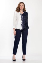 Блузка женская прямого силуэта, с втачным рукавом. Горловина v-образной формы. Отделкой служит воротничок из кружева. Застежка центральная на пять петель и пуговиц. По линии груди вытачки. Рукав длинный расширенный к низу, на притачной манжете с застежкой на петлю и пуговицу. В боковых швах обработаны разрезы.