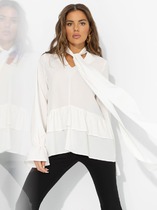Блузка женская прямого кроя, с втачным рукавом. Горловина v- образной формы с воротником стойкой декорирована контрастной шнуровкой. Спинка цельная. Рукав длинный со сборкой по окату, низ рукава присобран на притачную манжету с застежкой на петлю и пуговицу. В боковых швах обработаны разрезы.