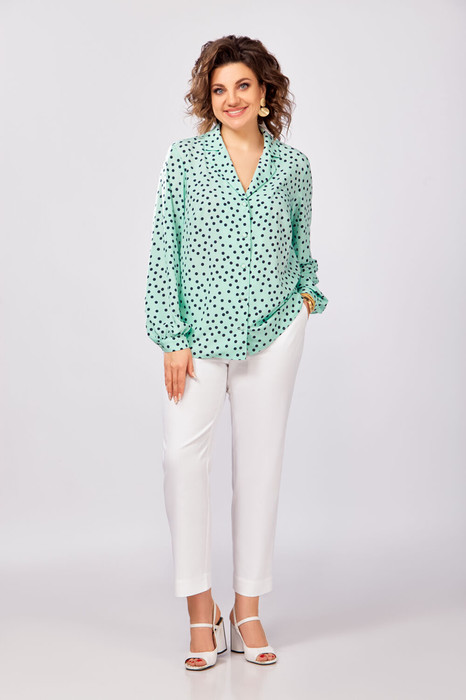 Совместные покупки Пермь Женская одежда Блузки, рубашки — Блуза Swallow 842.2 Мята в темно-синий горошек