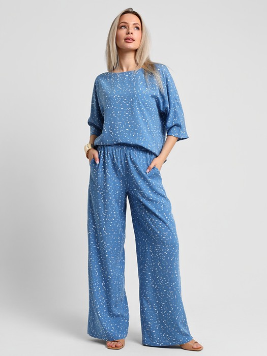 Блуза женская из гладкокрашеного тканого полотна «муслин», прямого силуэта, с горловиной овальной формы и короткими втачными рукавами. Горловина обработана втачной планкой, в боковых швах разрезы.