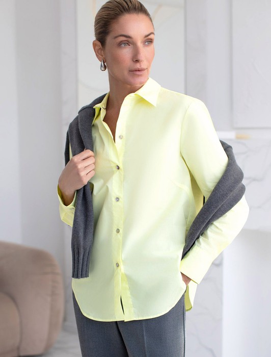 Состав: 100%Хлопок Параметры модели на первом фото: Рост 170, бюст 89, талия 63, бедра 92 Размер товара на первом фото: 42Блузка выполнена из премиального хлопкового поплина. Лаконичная модель с высокими манжетами и пуговицами из натурального перламутра хорошо впишется в любой гардероб и внесет яркий летний акцент в образ. Натуральный состав ткани обладает высокой воздухопроницаемостью и гигроскопичностью. В изделии будет комфортно, даже в самое жаркое время года. Подходит для любой фигуры. На спинке фирменный логотип бренда.