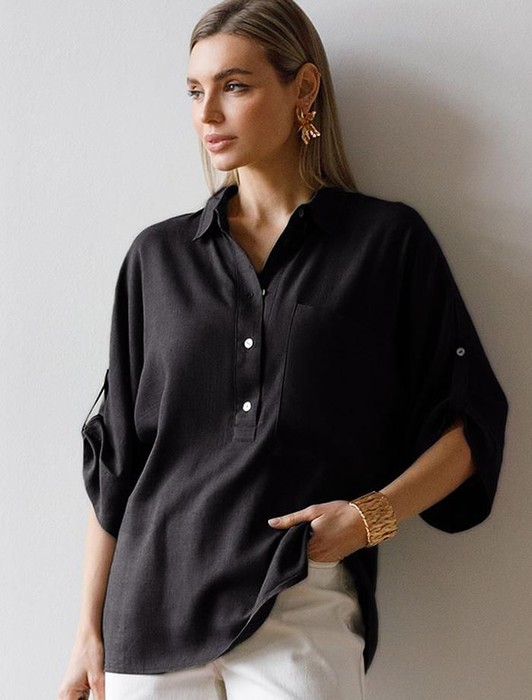 Блузка с цельнокроеным рукавом изо льна с вискозой