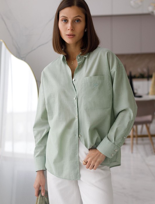 Состав: 100%Хлопок Плотность: 70 Г/м2Свободная блузка светло-оливкового цвета с отложным воротником из хлопка станет отличным выбором для тех, кто ценит комфорт и стиль. Благодаря натуральной ткани, блузка приятная к телу и подходит для ежедневной носки. Материал — 100% хлопок — гарантирует хорошую воздухопроницаемость и ощущение свежести даже в жаркие дни. Удлиненный крой создает современный силуэт, который отлично смотрится в повседневных образах. Базовая модель легко впишется в любой гардероб и станет универсальным решением для самых разных случаев.Ткань держит форму после стирки, что делает уход за вещью простым и удобным. Карман на груди добавляет функциональности и делает образ более интересным. Натуральная структура материала не раздражает кожу, а сама блузка освежает внешний вид благодаря своему лаконичному дизайну и приятной расцветке.