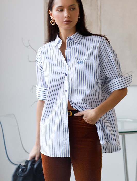 Состав: 72%Хлопок 25%ПА 3%ПУ Плотность: 93 Г/м2Эффектная блузка белого цвета в синюю полоску свободного силуэта станет главным акцентом вашего повседневного образа. Контрастные полосы освежают внешний вид и придают уверенности в любой ситуации. Благодаря хлопку с добавлением эластана блузка отлично держит форму, а принт полоска стройнит и визуально вытягивает силуэт. Яркая и стильная рубашка с отложным воротничком подчеркнет вашу элегантность. Удлиненная спинка со складкой смотрится оригинально и добавит динамики. Аккуратная вышивка на кармане в виде логотипа бренда добавляет премиальности образу. Повседневная и практичная, такая блузка подойдет на весну и лето, обеспечивая легкость и комфорт благодаря натуральному материалу. Мягкий эластичный хлопок приятен к телу и хорошо пропускает воздух, что особенно актуально в теплую погоду. Модель гармонично смотрится на разных размерах, в том числе и больших, а свободный крой не сковывает движений, подчеркивая индивидуальность и современный стиль.