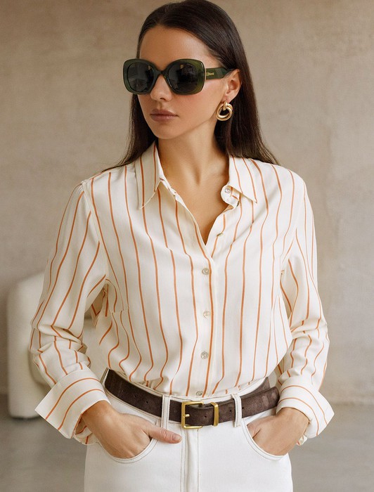 Совместные покупки Пермь Женская одежда Костюмы, комплекты — Блузка свободного силуэта в тонкую полоску из эластичного хлопка