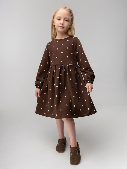 Совместные покупки Пермь Детская одежда Платья — Bodo Платье с сердечками 18-167MD коричневый (экрю)