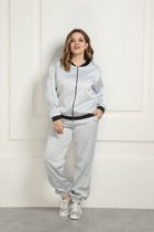 Спортивный трикотажный бомбер на молнии с контрастной отделкой довязом и тесьмой.
