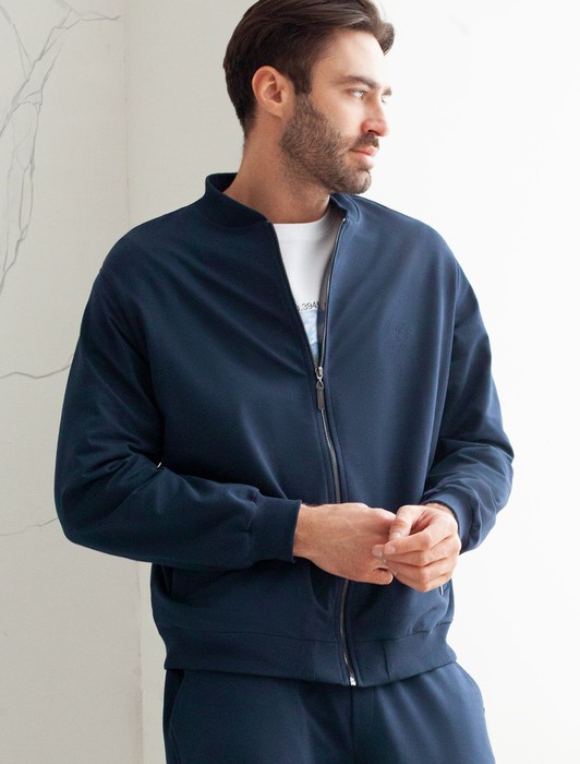 Состав: 75%Хлопок 20%ПЭ 5%ПУ Плотность: 240 Г/м2Бомбер выполнен из футера двухнитки с эластаном. Застежка на молнию с наконечником из эко-кожи. Спереди лаконичная вышивка с буквой V в тон изделия. Модель дополнена карманами и фирменным металлическим логотипом бренда. Сочетается в костюме с брюками U44.005