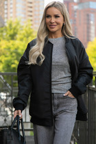 Женский бомбер в стиле оверсайз — идеальное решение для осенне-весеннего сезона! Этот стильный элемент гардероба выполнен в классическом черном цвете, что позволяет легко сочетать его с любой одеждой. Спереди расположено два вместительных кармана, а центральная застёжка на молнии обеспечивает комфортное надевание и снятие. Спущенная линия плеча придает образу расслабленность, а воротник, манжеты и низ, выполненные из кашкорсе, добавляют изысканности. Внутри находится утеплитель, который прекрасно сохраняет тепло в прохладные дни. Этот бомбер станет незаменимым элементом гардероба для создания стильных и комфортных образов!