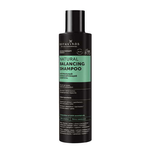 Шампунь на основе природных компонентов способствует эффективному очищению, восстановлению баланса волос, обеспечивает надежную профилактику перхоти.