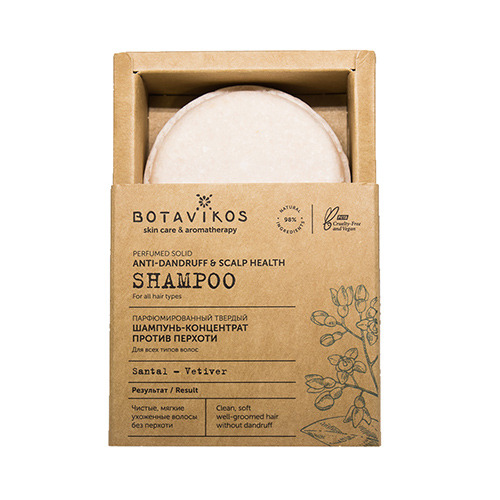 Твердый шампунь-концентрат на мягкой моющей основе из ПАВ растительного происхождения деликатно очищает волосы и кожу головы, продлевает ощущение чистоты и свежести.
