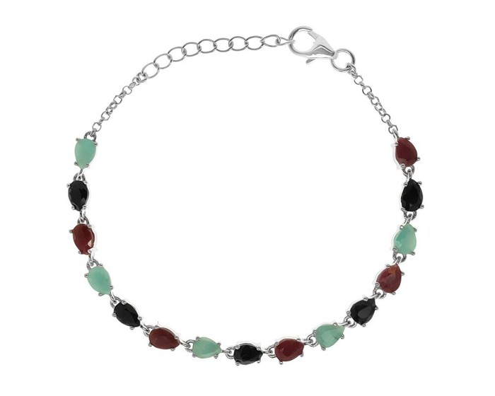 Браслет из серебра изумруд берилл, рубин корунд, сапфир корунд, Капелла