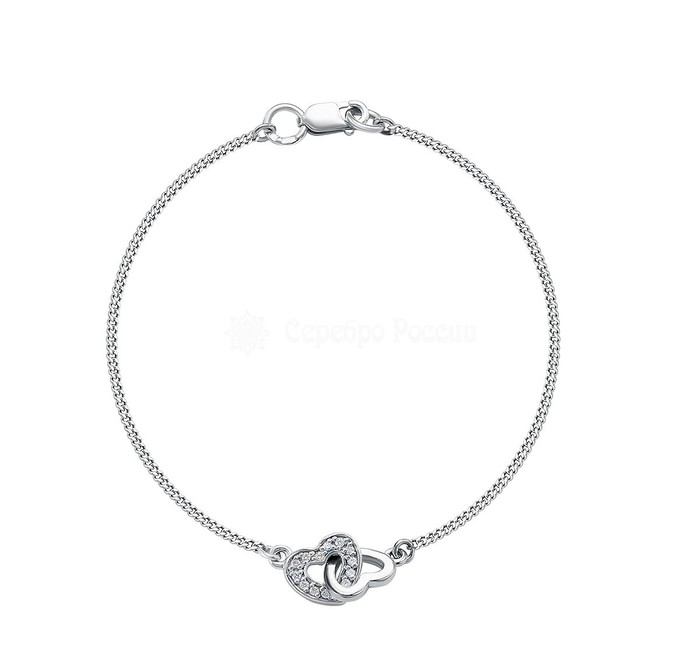 Совместные покупки Пермь Ювелирные украшения и бижутерия Браслеты — Браслет из серебра с фианитами родированный - Сердца