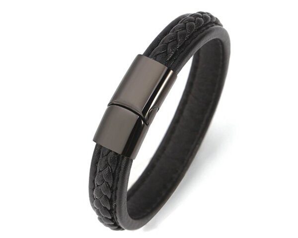 Браслет, кожа , сталь, ALB-ИМ22-1