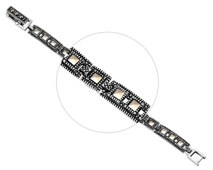 Вес: 12.56 г Вставка: Марказит Цвет камня: Серый Производство: Таиланд Покрытие: Оксидирование Количество: 2Браслет, арт.656330 Серебро Серебро 925, р. 20.5, 12,56 гр., марказит