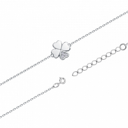 Браслет с фианитом родированный серебро 925*